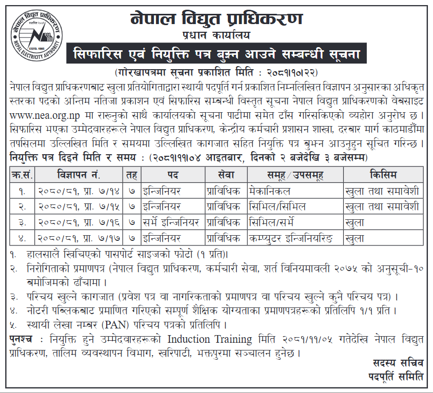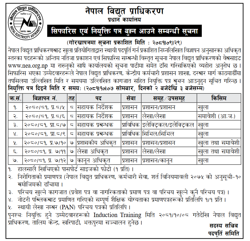 • List of Employees to be Compulsorily Retired in Baisakh and Jestha 2082