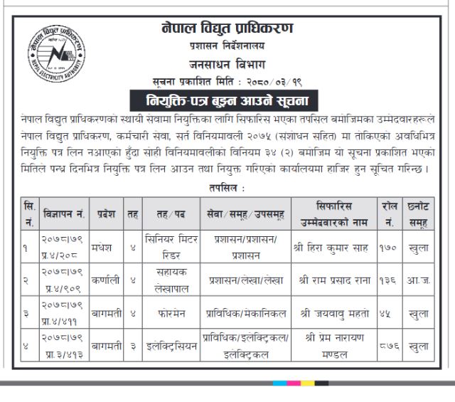 • Details of employees who will be compulsorily retired in the months of Kartik - Mangsir 2080 as per the decision dated 2080/03/11