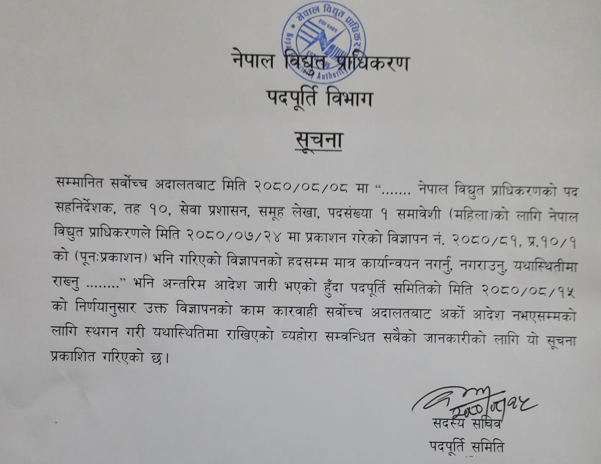 • Nepal Electricity Authority, Department of Recruitment