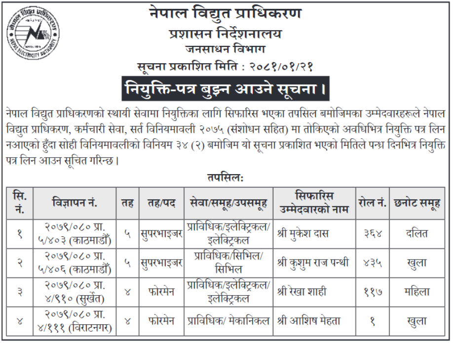 • Notice Regarding Collection of Appointment Letter